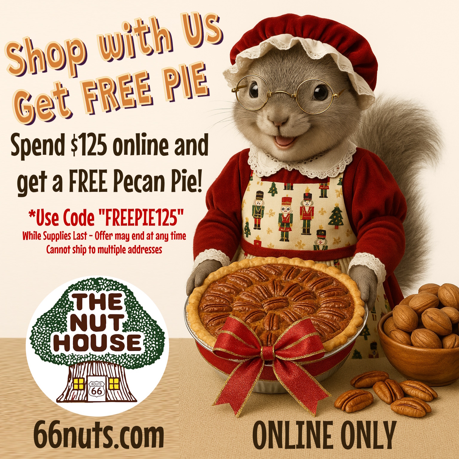 a Pecan Pie FREE- Will be shipped with the rest of your $125 (subtotal) order!